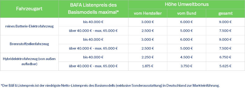 von kfztech.de Elektroauto: Tipps zum Kauf und der FörderprämieDurch die Erhöhung der Förderprämie lohnt sich der Kauf eines neuen Elektroautos aktuell mehr als je zuvor. Dadurch nimmt das Interesse an E-Autos, das zu Beginn der Corona-Pandemie stark eingebrochen war, erneut zu. Die Zahl der Förderanträge steigt. Wir zeigen Ihnen, was in der Förderprämie enthalten ist, welche aktuell die beliebtesten E-Auto Hersteller sind und was Sie beim Kauf beachten sollten. Umfang der FörderprämieZunächst ist es wichtig zu wissen, dass die Prämie nur für Erstzulassungen und junge, gebrauchte E-Autos, die nach dem 04. November zugelassen wurden, in Kraft tritt und zudem nur bis zu dem 31. Dezember 2025 gilt. Den Betrag der Prämie (Umweltbonus) erhalten die Antragssteller zu 50 Prozent vom Bund und zu 50 Prozent von den Autoherstellern selbst. Der Herstelleranteil wird direkt beim Kauf abgezogen, der Beitrag vom Bund muss erst nach der Gewährung des Herstellerbonus beantragt werden. Je nach Fahrzeugart gelten unterschiedliche Beträge: