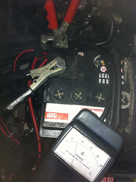 Kfz-Elektrik | Der el. Strom | Wirkungen d. el. Stroms | Widerstand | Bei Messungen mit einem Digital- oder Analogmultimeter wird das Strommessgerät immer in Reihe zum Verbraucher angeschlossen. Dazu muss die Leitung des Stromkreises an einer Stelle aufgetrennt werden, um das Messgerät in den Stromkreis einfügen zu können. „Aufgetrennt“ bedeutet hier nur, dass der Kabelbaum an einer Stelle gelöst werden muss. Am einfachsten ist es bei einem Kfz wohl, wenn die Sicherung des zu messenden Stromkreises herausgenommen wird und an dessen Stelle der Strommesser dazwischen geklemmt wird. Grundsätzlich ist es aber unerheblich, ob das Amperemeter in der Hin- oder Rückleitung des zu messenden Stromkreises angeschlossen wird.