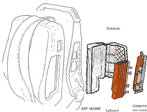 Seitenairbags im Gegensatz zum Frontalairbag (Füllvermögen ca. 12 l) die