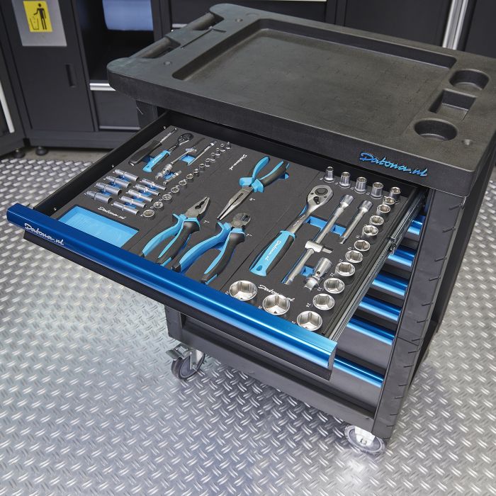 Werkstattwagen bietet die Möglichkeit, Werkzeuge und Materialien geordnet und stets griffbereit aufzubewahren. Mit ihren Lenkrollen sind die Wagen mobil, so dass man sie dort einsetzen kann, wo sie gebraucht werden. Die Wagen lassen sich leicht und sicher manövrieren. Wenn man die Bremse anzieht, können sie nicht wegrollen. Einige Modelle sind mit einer zusätzlichen Arbeitsfläche auf der Oberseite ausgestattet. Sie eignet sich zum Ablegen des Werkzeugs und zur Durchführung kleinerer Montagen. Im Fachhandel stehen Werkzeugwagen in vielen verschiedenen Größen und Bauarten zur Auswahl.